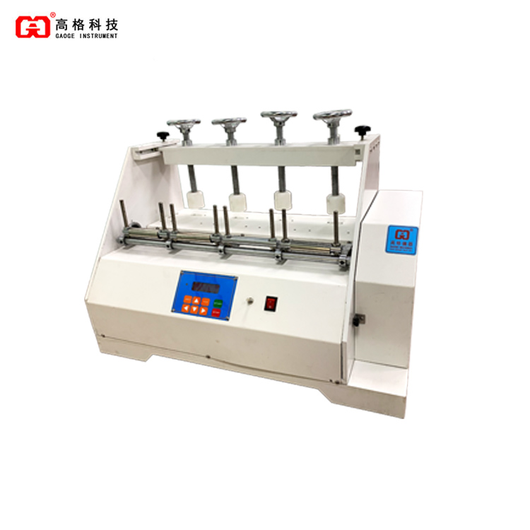 使用本机时,先在鞋底测试时之最大弯折处,刺穿若干指定孔,然后以本机夹具固定鞋底两端,夹具一为固定,一为活动,测试时夹具中间之圆轴反复凸起,用以弯折鞋底,弯折一定次数后,以放大镜检视鞋底耐伸展程度。具有断电记忆功能。
